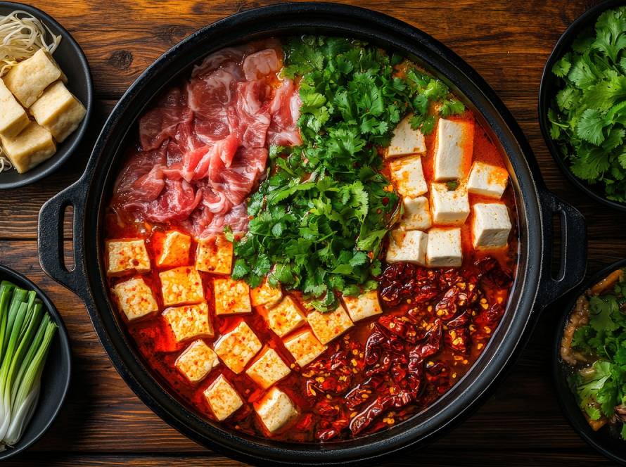 Das ist ein klassisches Gericht aus der Sichuan-Küche, bei dem dünne Rindfleischscheiben in einer scharfen Brühe mit Chili und Sichuan-Pfeffer gekocht werden.